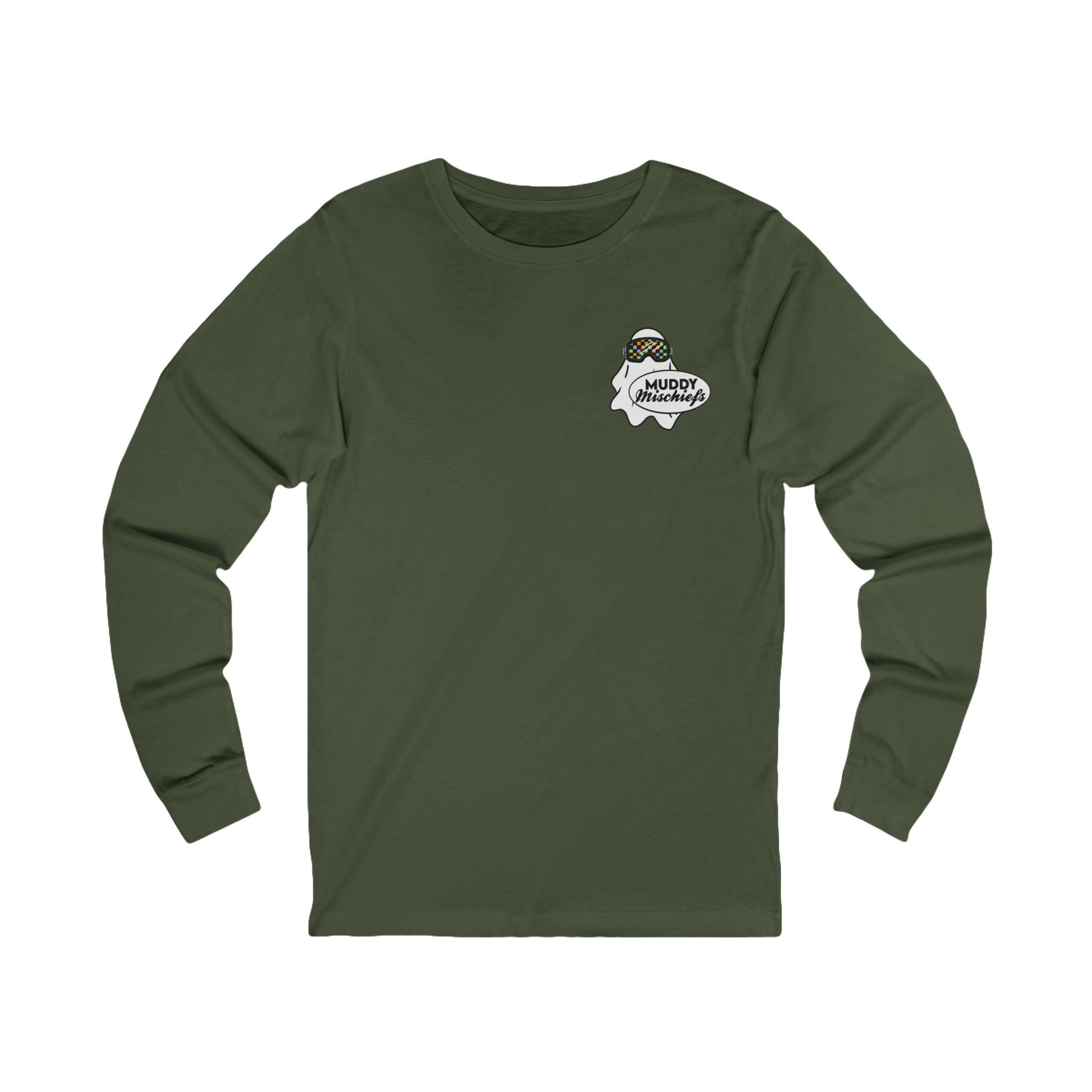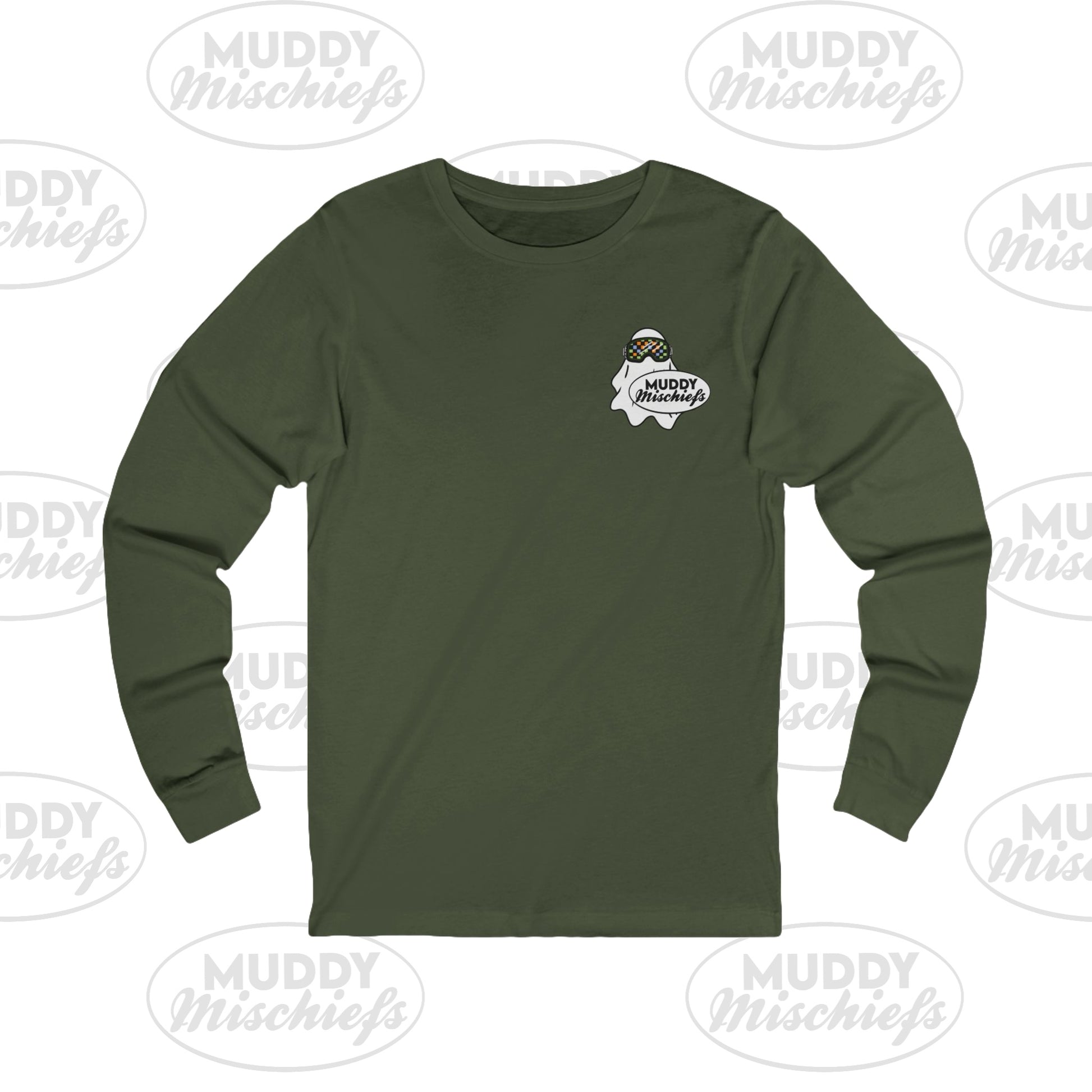 Printed on both front and back, the front features the goggle ghost alone with our Muddy Mischiefs emblem. On the back, you'll find your favorite goggle ghost again, with Booooo- err, we mean, BRAAAAAAAAP in the background. Printed on Bella + Canvas, designed with love by Muddy Mischiefs.
