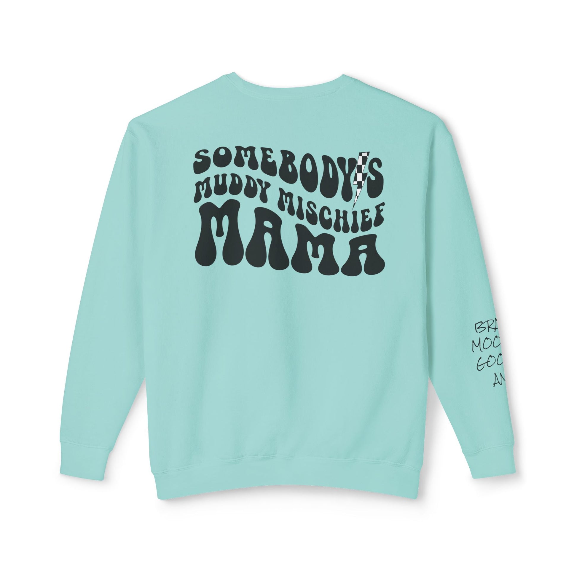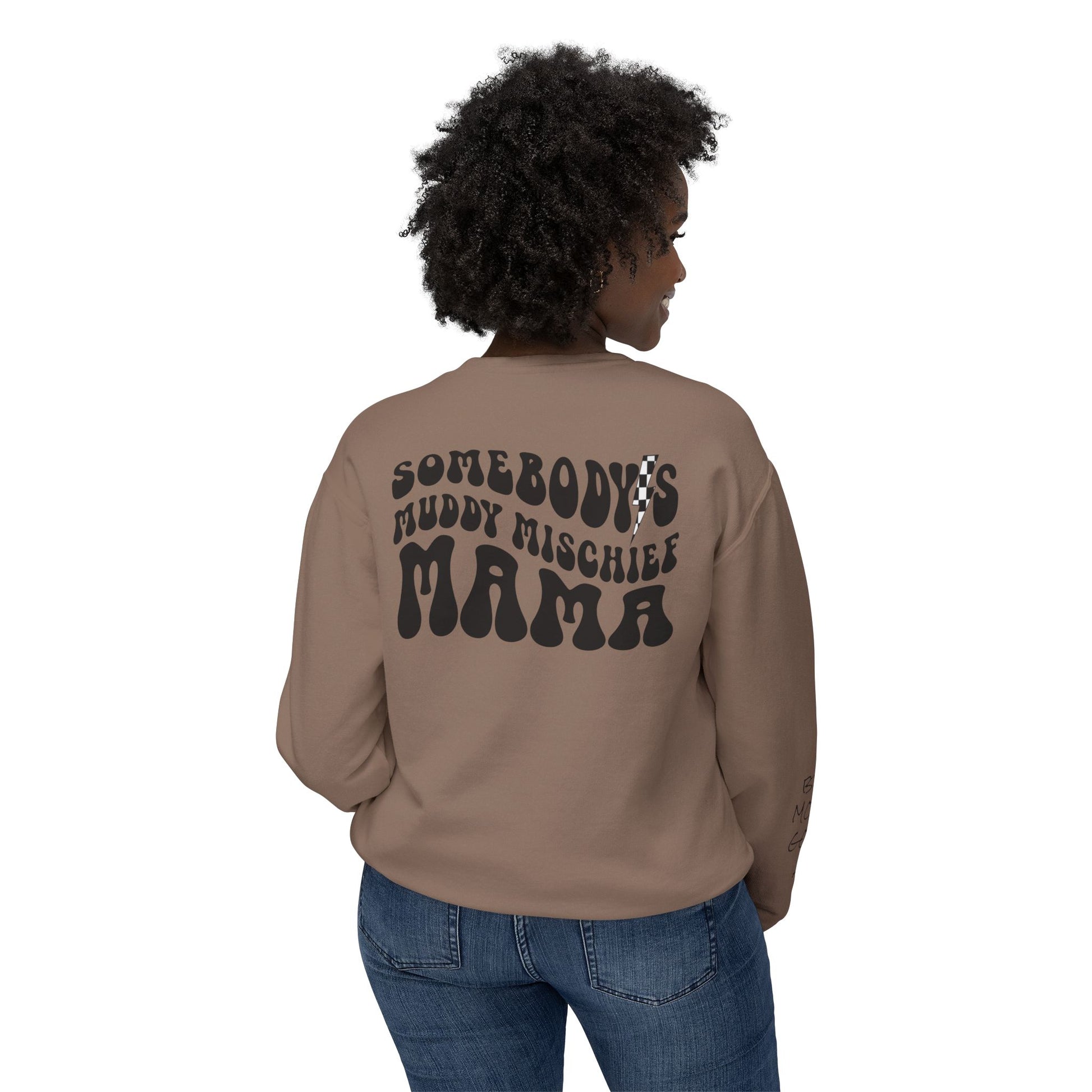 Somebody’s Muddy Mischief Personalizable Crewneck Sweatshirt | Adult Brand Sweatshirt