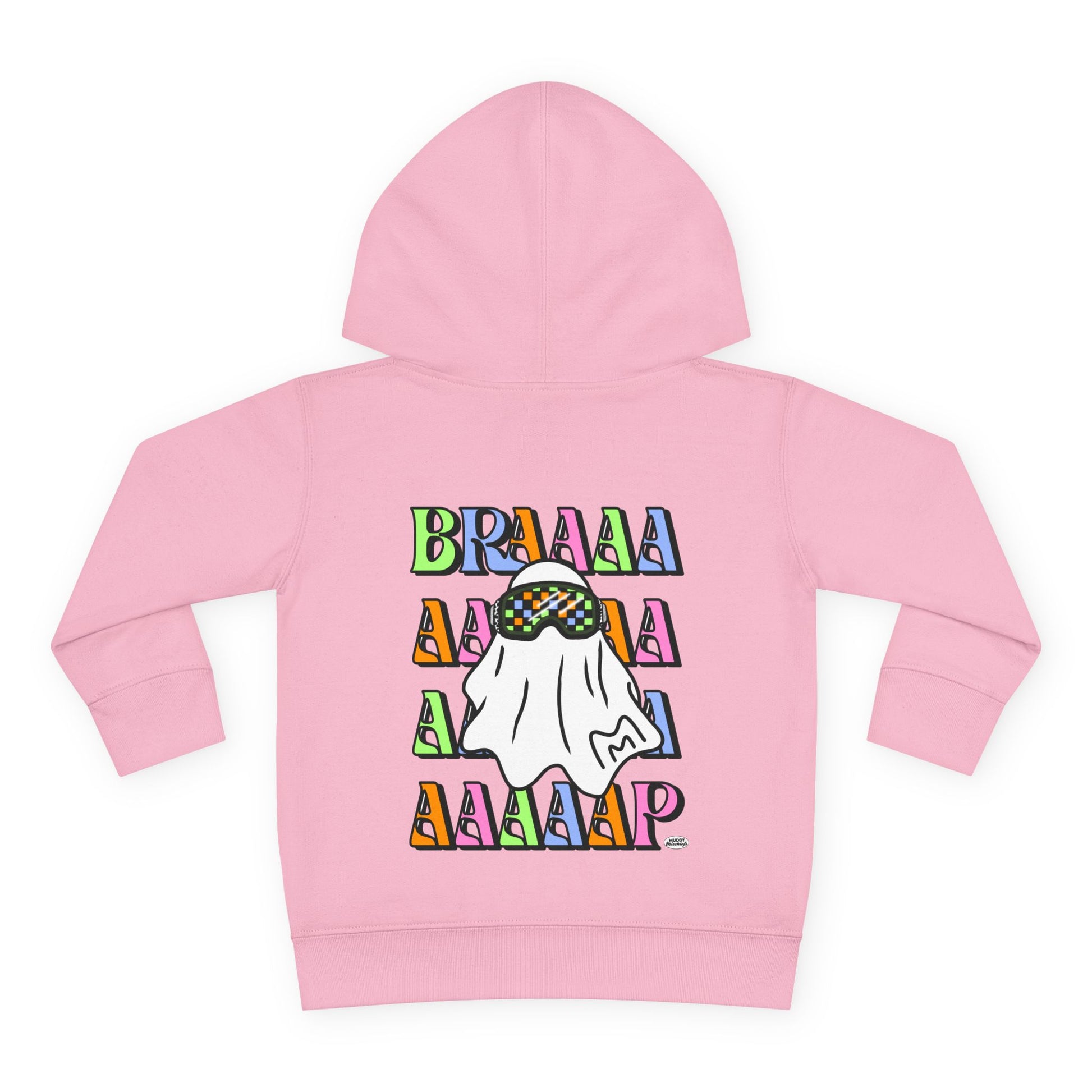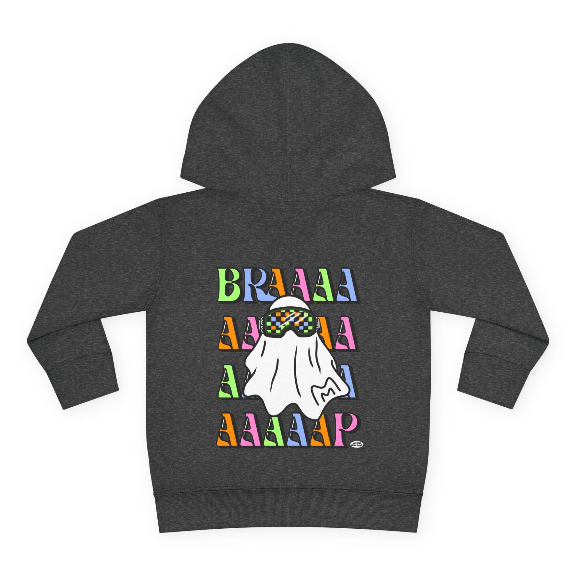 Printed on both front and back, the front features the goggle ghost alone with our Muddy Mischiefs emblem. On the back, you'll find your favorite goggle ghost again, with Booooo- err, we mean, BRAAAAAAAAP in the background. Printed on Rabbit Skins, designed with love by Muddy Mischiefs.