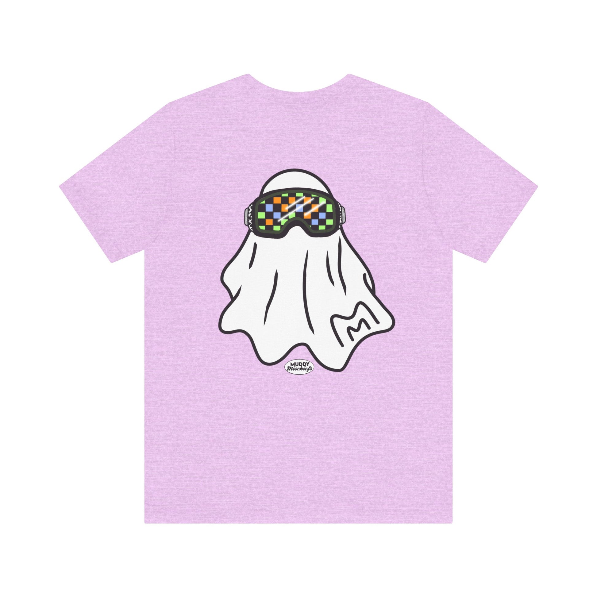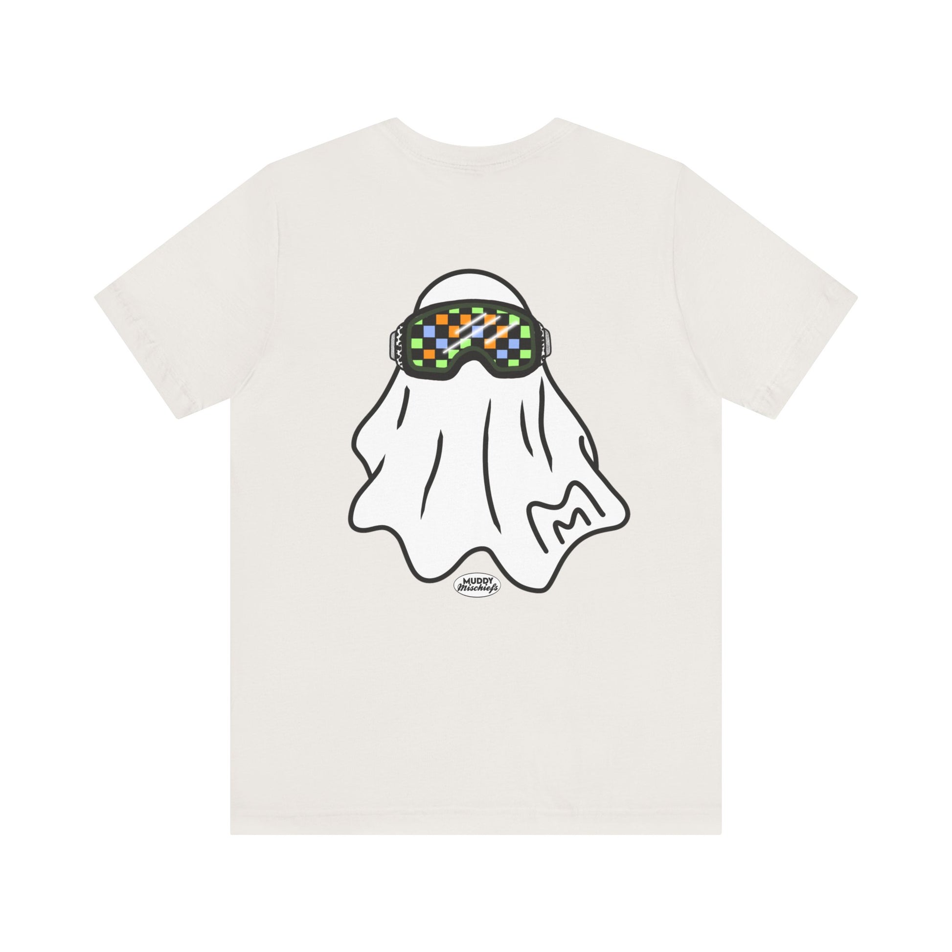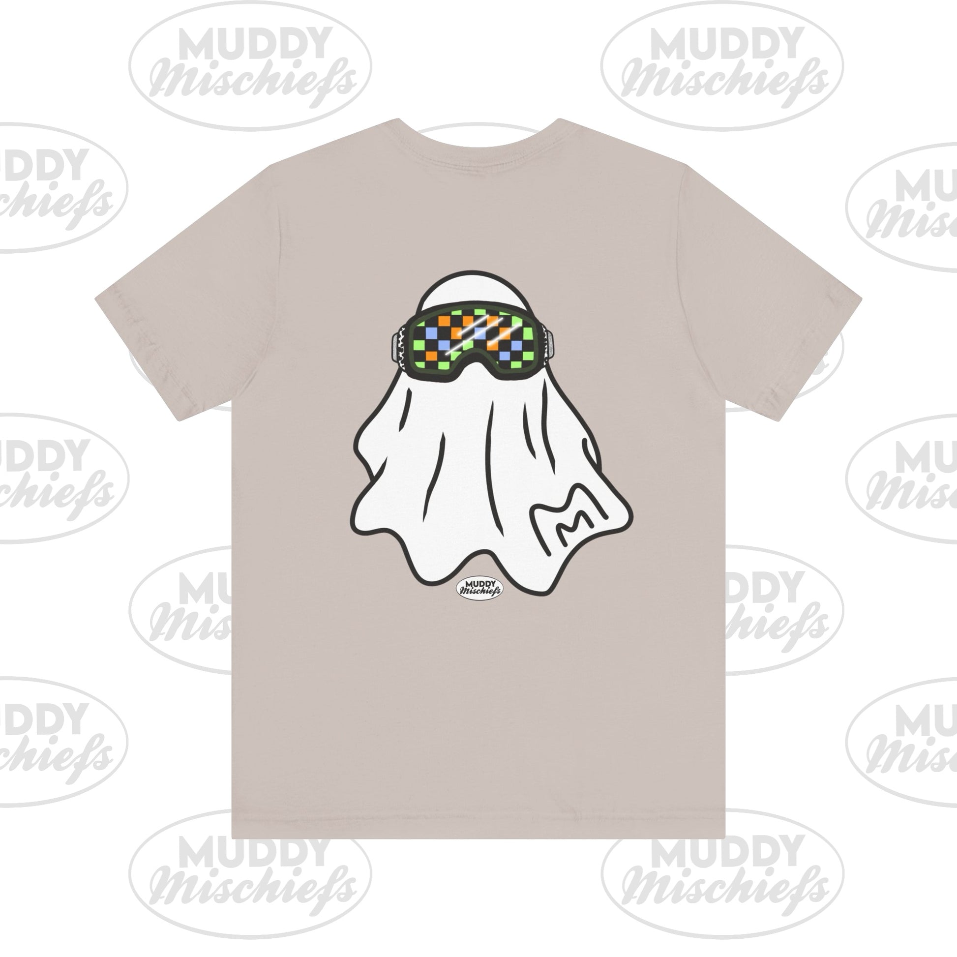 Printed on both front and back, the front features the goggle ghost alone with our Muddy Mischiefs emblem. On the back, you'll find your favorite goggle ghost again, with Booooo- err, we mean, BRAAAAAAAAP in the background. Printed on Bella + Canvas, designed with love by Muddy Mischiefs.