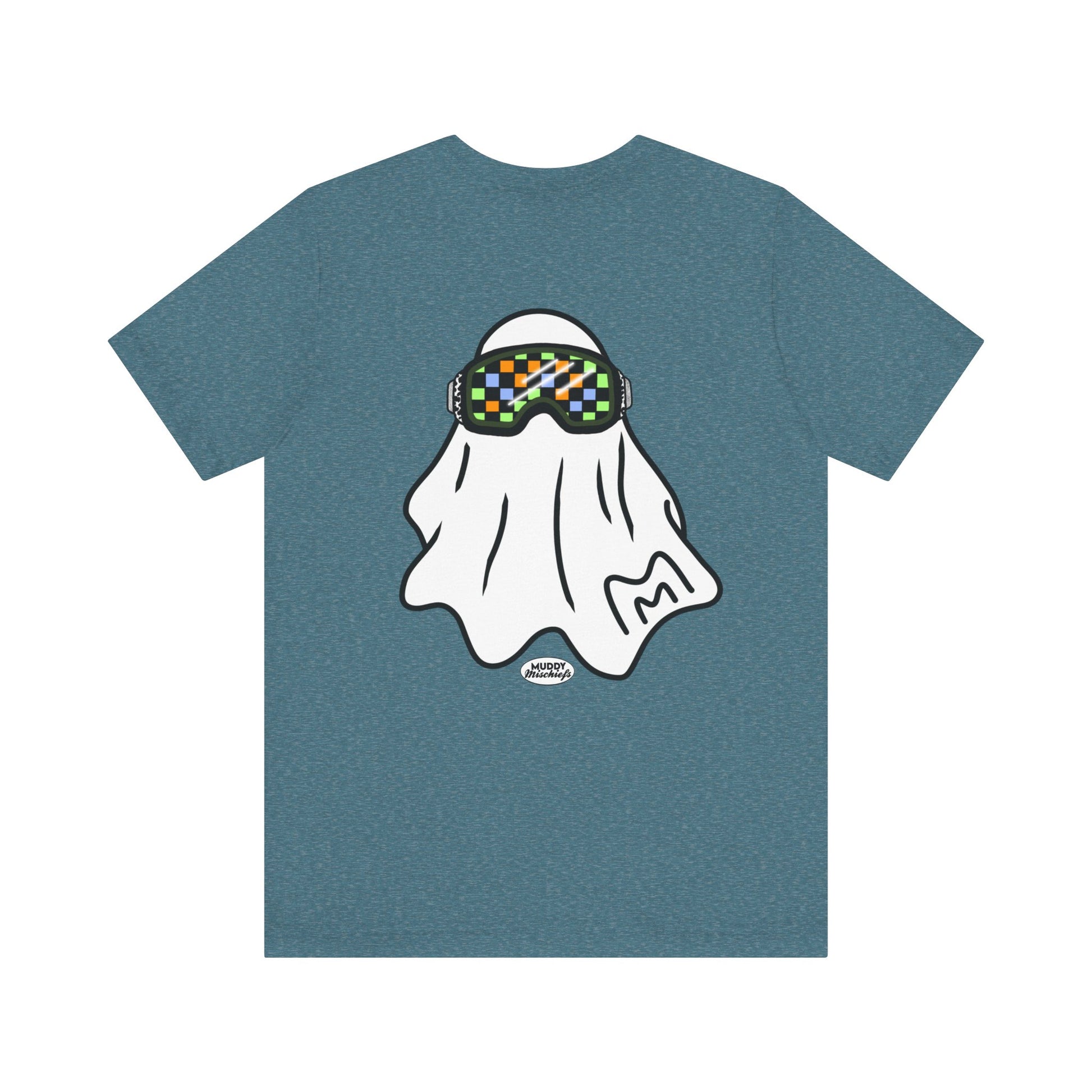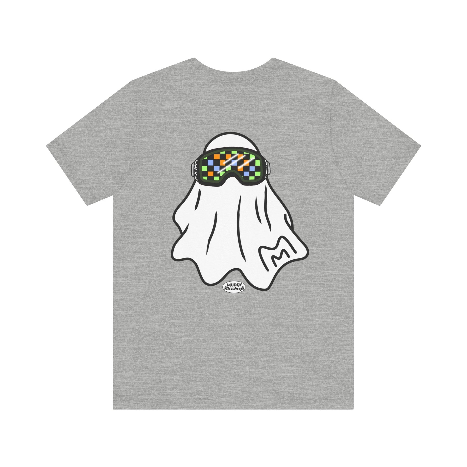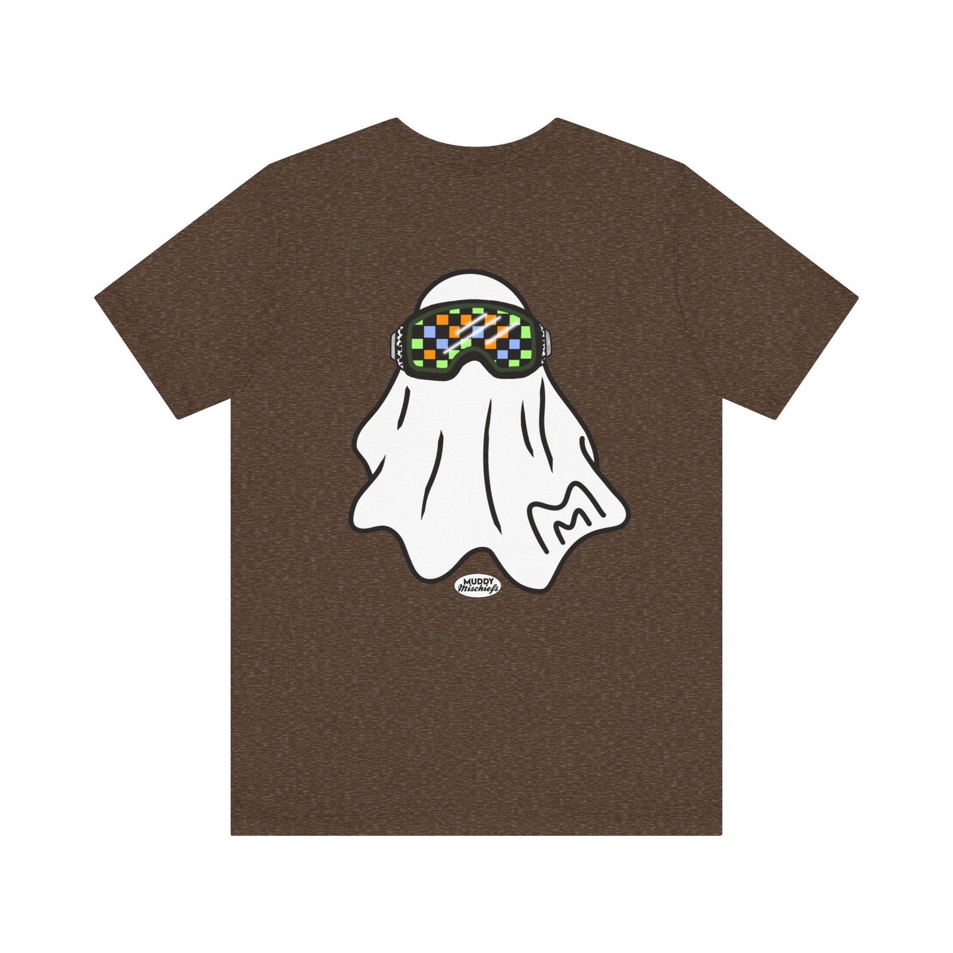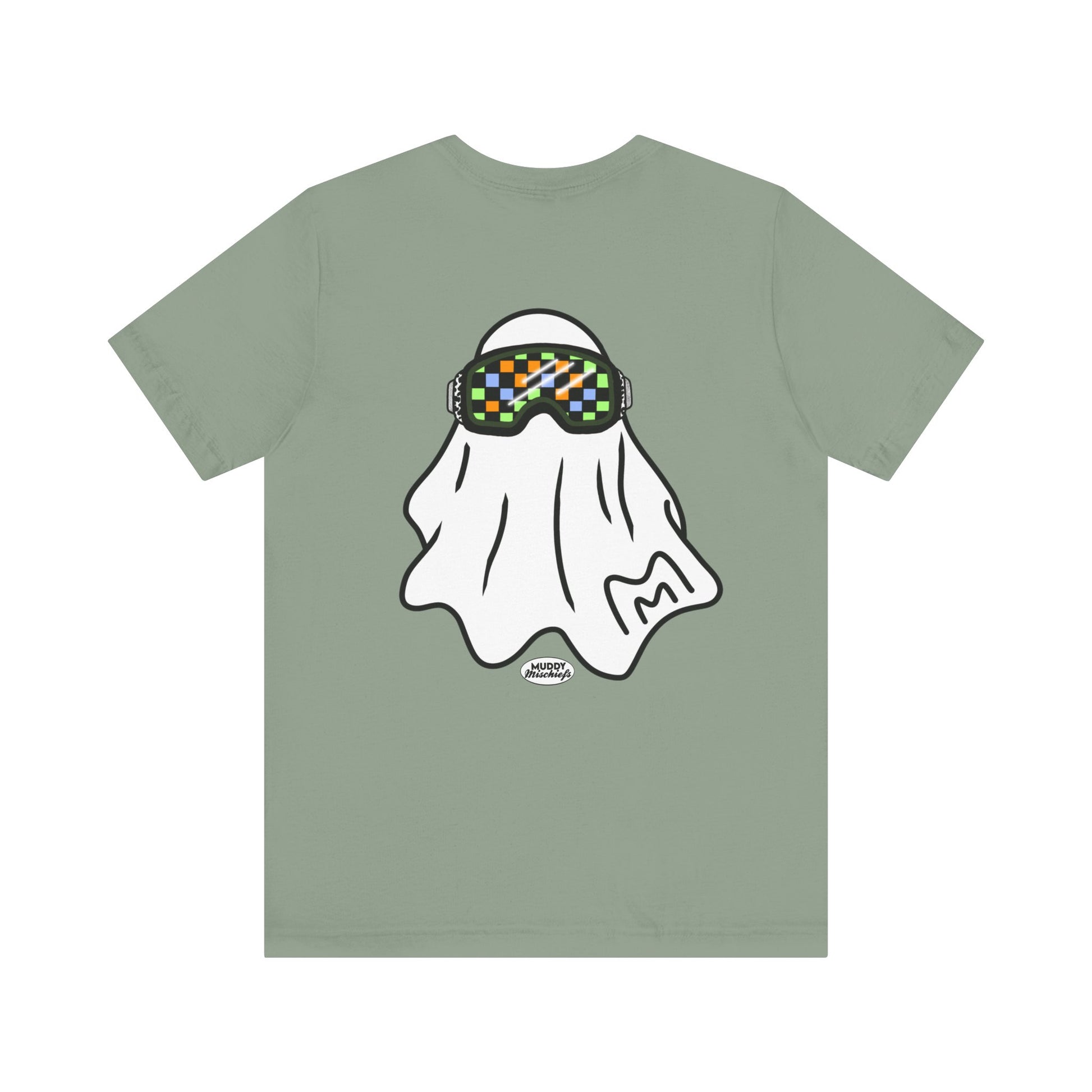 Printed on both front and back, the front features the goggle ghost alone with our Muddy Mischiefs emblem. On the back, you'll find your favorite goggle ghost again, with Booooo- err, we mean, BRAAAAAAAAP in the background. Printed on Bella + Canvas, designed with love by Muddy Mischiefs.
